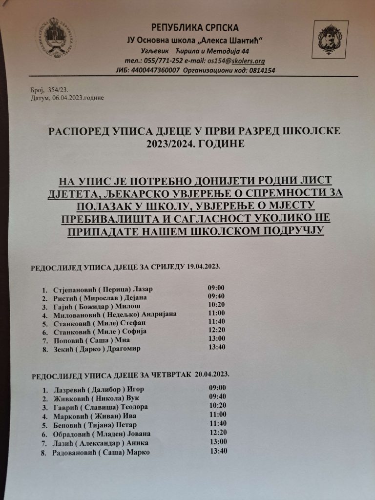 У понедјељак, 3. априла 2023. године, ученике првог разреда посјетили су саобраћајни полицајци Полицијске станице Угљевик и представница Ауто-мото друштва Угљевик.
