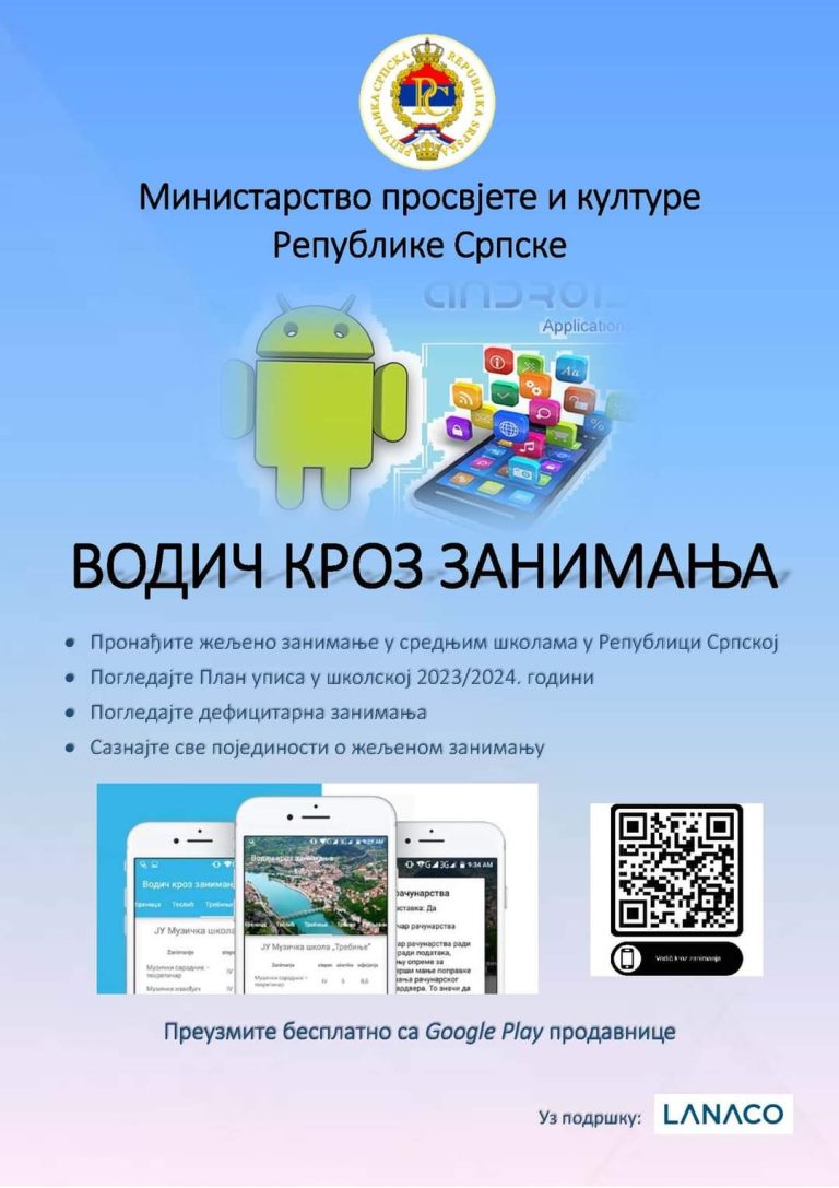 Апликација је доступна на Google Play маркету и сви заинтересовани ученици, наставници и родитељи је могу бесплатно преузети и инсталирати на своје мобилне телефоне. Потребно је да у претраживачу на Google Play маркету унесу “Vodic kroz zanimanja” и претрага ће…