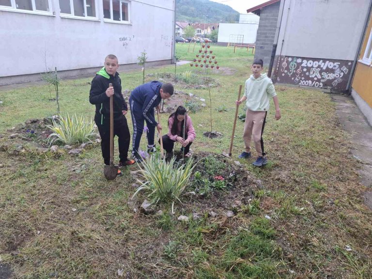 У сређивању цвјетњака поред школе свој допринос су дали и ученици осмог два који су заједно са својом наставницом, Биљаном Јовичић, посадили цвијеће.  На тај начин ученици су учествовали у очувању животне средине, али и у обнављању једног простора око школе.…