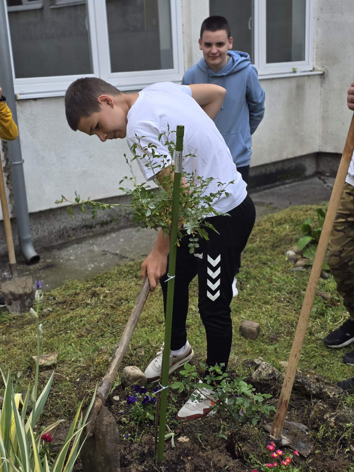 О важности екологије и заштити животне средине посебно се говори и на часовима ВРОЗа. У складу с тим данас су и ученици осмог три, заједно са својим наставником Милијаном Николићем посадили руже у цвјетњаку.
