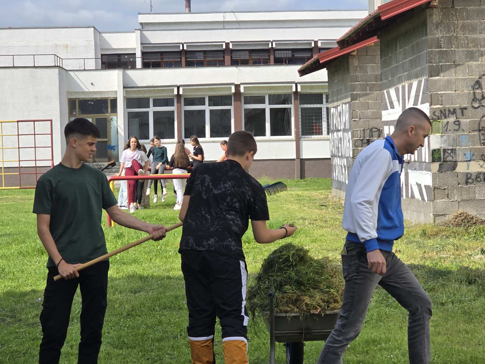 У оквиру акције Април – мјесец чистоће наши ученици су укључени у процес сређивања цвјетњака поред школе.