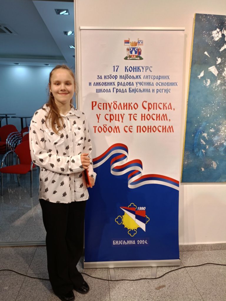 Освојила је 2. мјесто на 17. Литерарно ликовном конкурсу регије Семберије, Посавине, Мајевице и Бирча, за ученике основних школа од 6. до 9. разреда на тему ,,Републико Српска у срцу те носим, тобом се поносим” у организацији Градске борачке организације из Бијељине. Ментор јој је била наставница Нада Микановић.