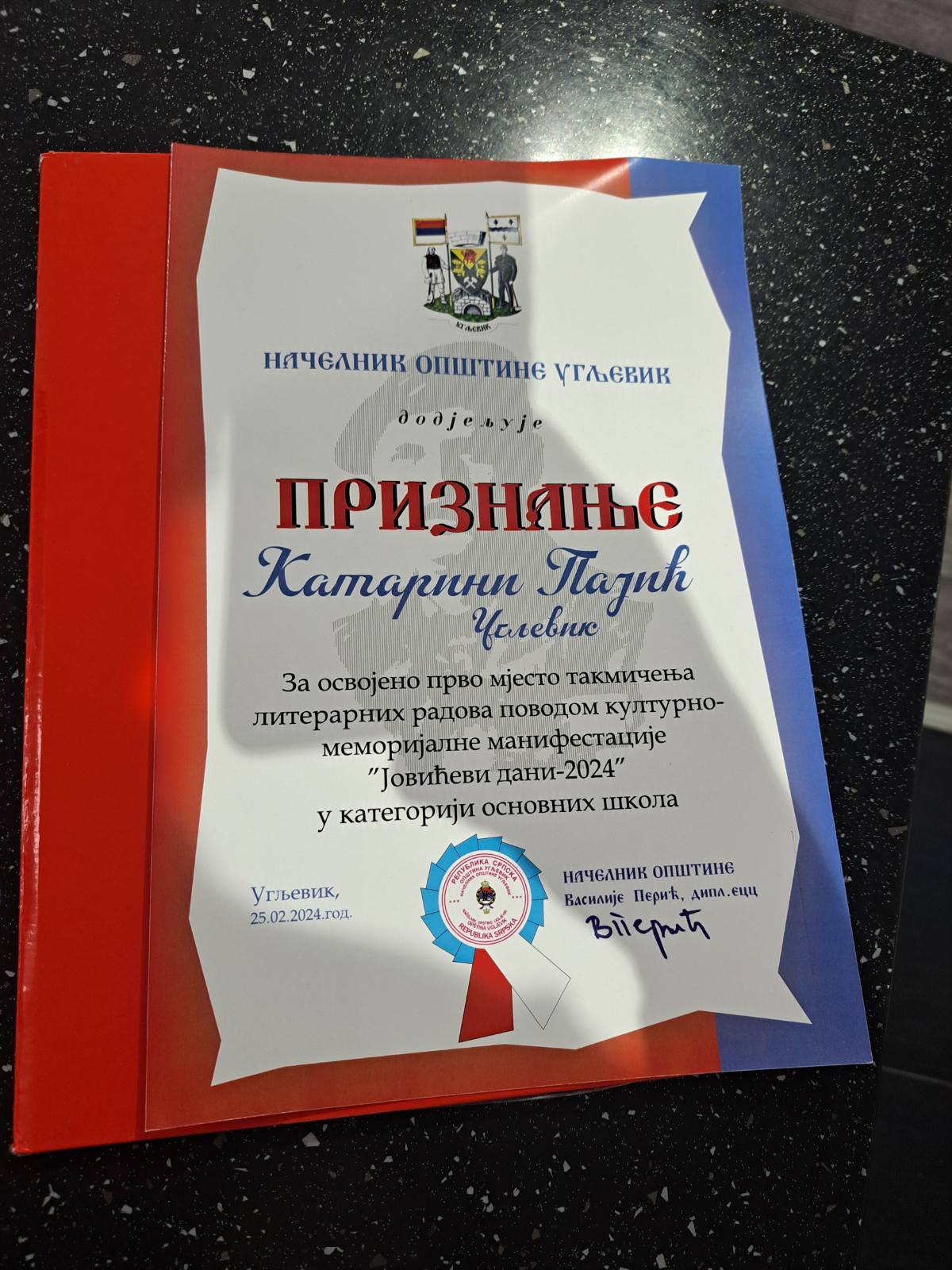 На литерарном конкурсу ,, Јовићеви дани“ наша ученица Катарина Пајић у конкуренцији основних школа освојила је прво мјесто. Њена менторка је наставница Нада Микановић. Честитамо!