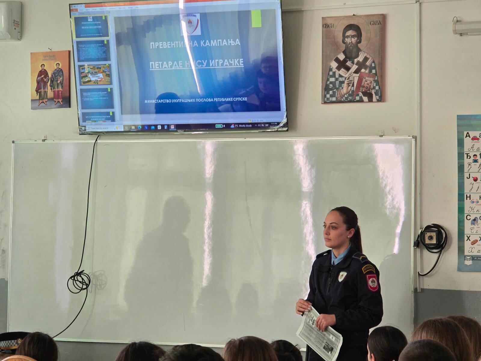 Полицијски службеници Министарства унутрашњих послова Републике Српске, ПС Угљевик, данас су одржали едукативно предавање с циљем да ученике упознају са опасностима које носи непрописна и нестручна употреба пиротехничких средстава.