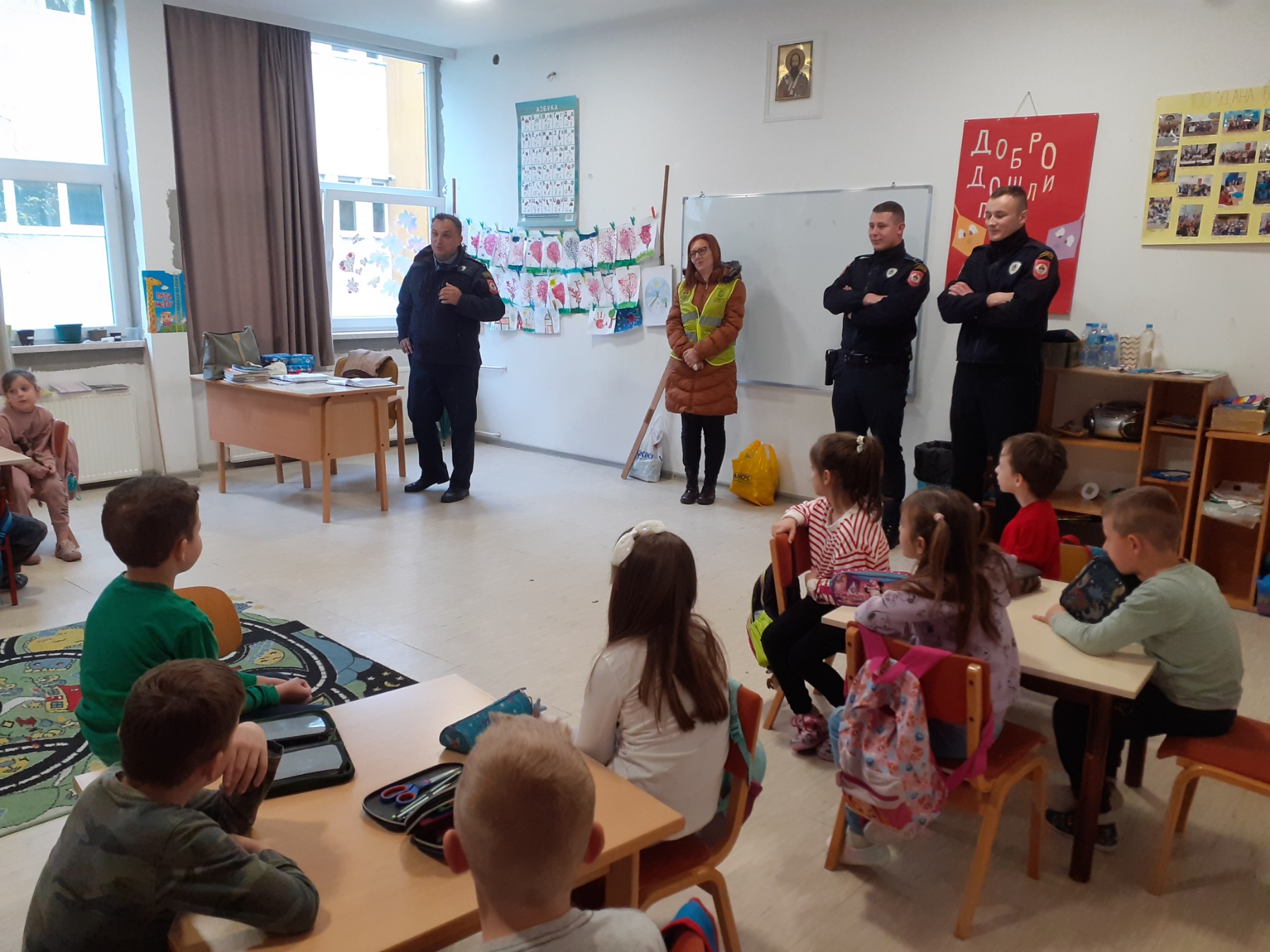 Том приликом одржали су предавање о одновним правилима понашања пјешака у саобраћају. Дјеца су са великом пажњом слушала и активно учествовала у предавању. Поред низа корисних савјета, ученици су добили и информативне летке о безбједности дјеце у саобраћају.