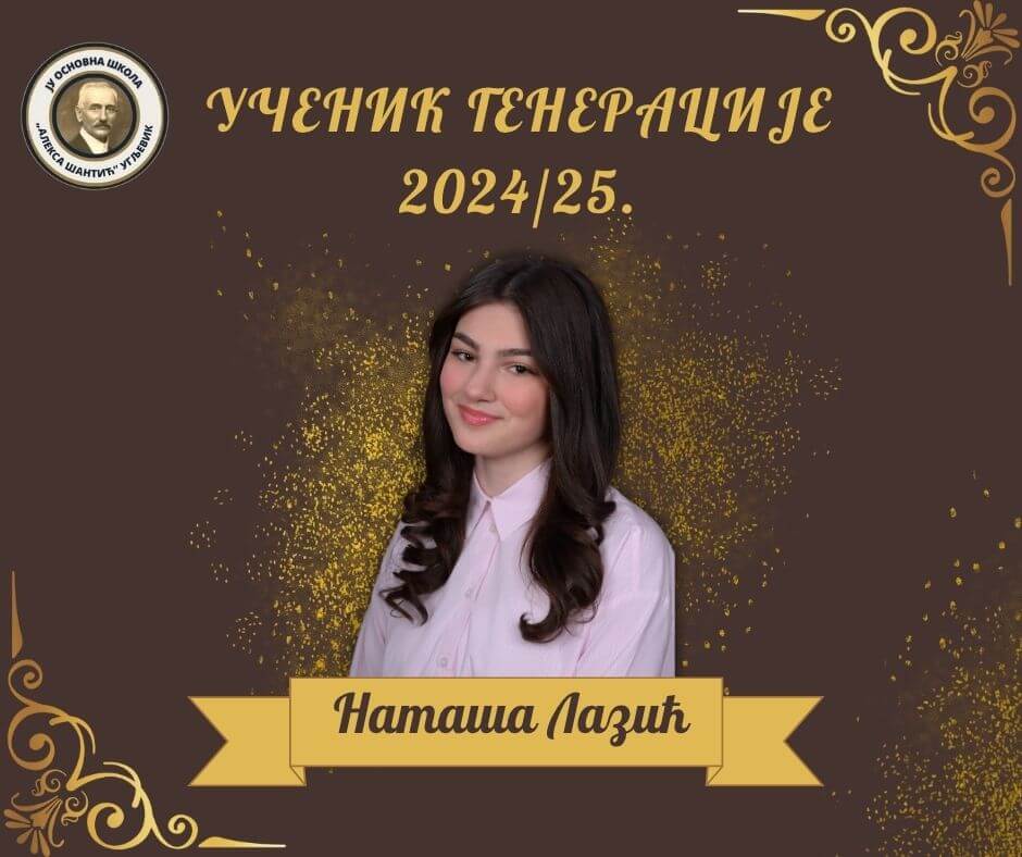 С великим поносом објављујемо да је ученица деветог један, Наташа Лазић, проглашена ученицом генерације Основне школе „Алекса Шантић“. Наташа се истакла својим изванредним успјехом, невјероватним радом и преданошћу, одличним резултатима у настави и ваннаставним активностима и потпуно заслужено добила ово признање.