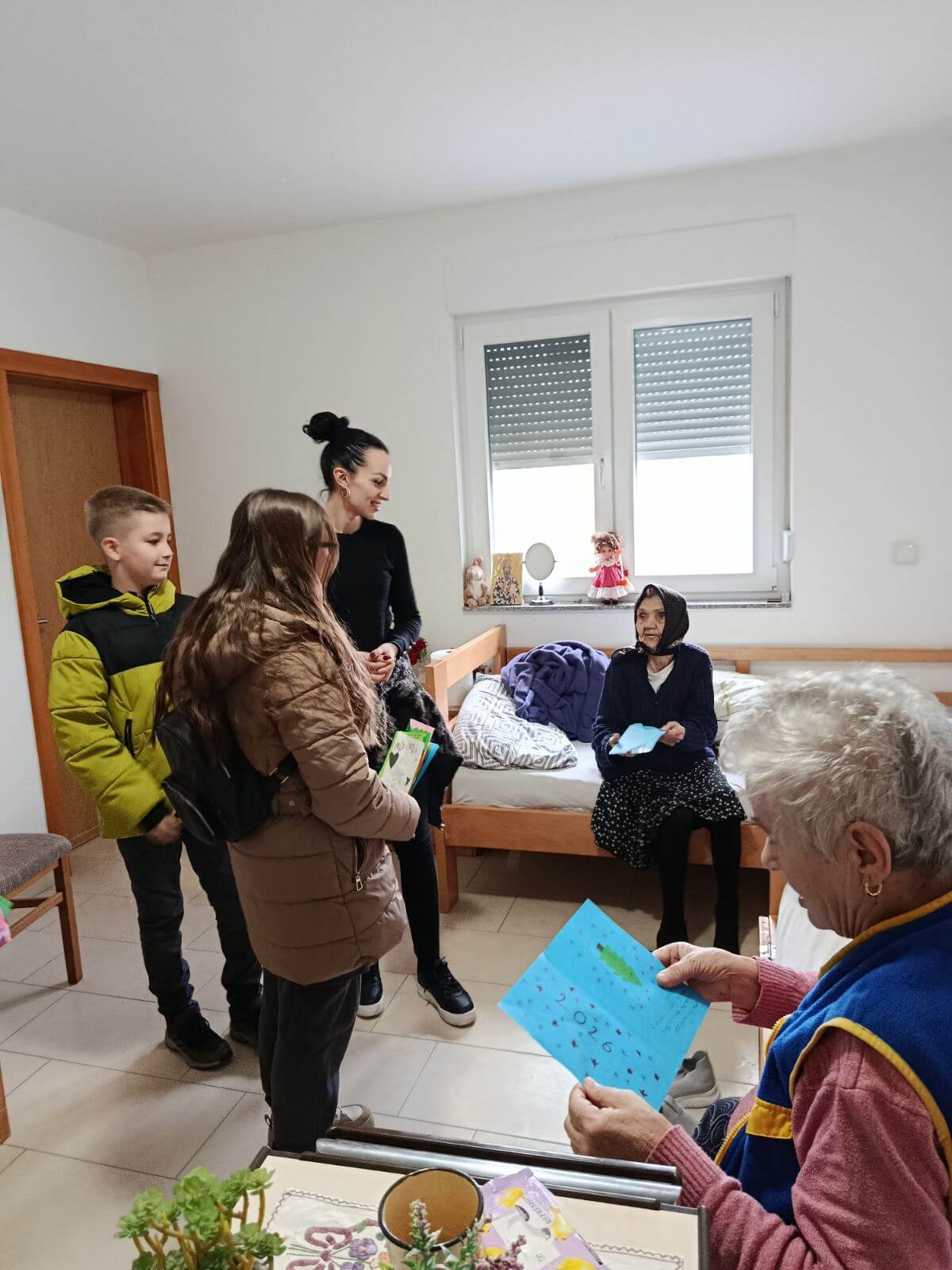 Ученици IV разреда Основне школе „Алекса Шантић“, заједно са својом учитељицом Слађаном Нешковић посјетили су Дом за стара лица у Тутњевцу. Том приликом уручили су новогодишње честитке које су, уз помоћ родитеља, израђивали на радионици. Корисници дома су са великом радошћу и захвалношћу примили малишане и изразили задовољство због њихове пажње и посјете.